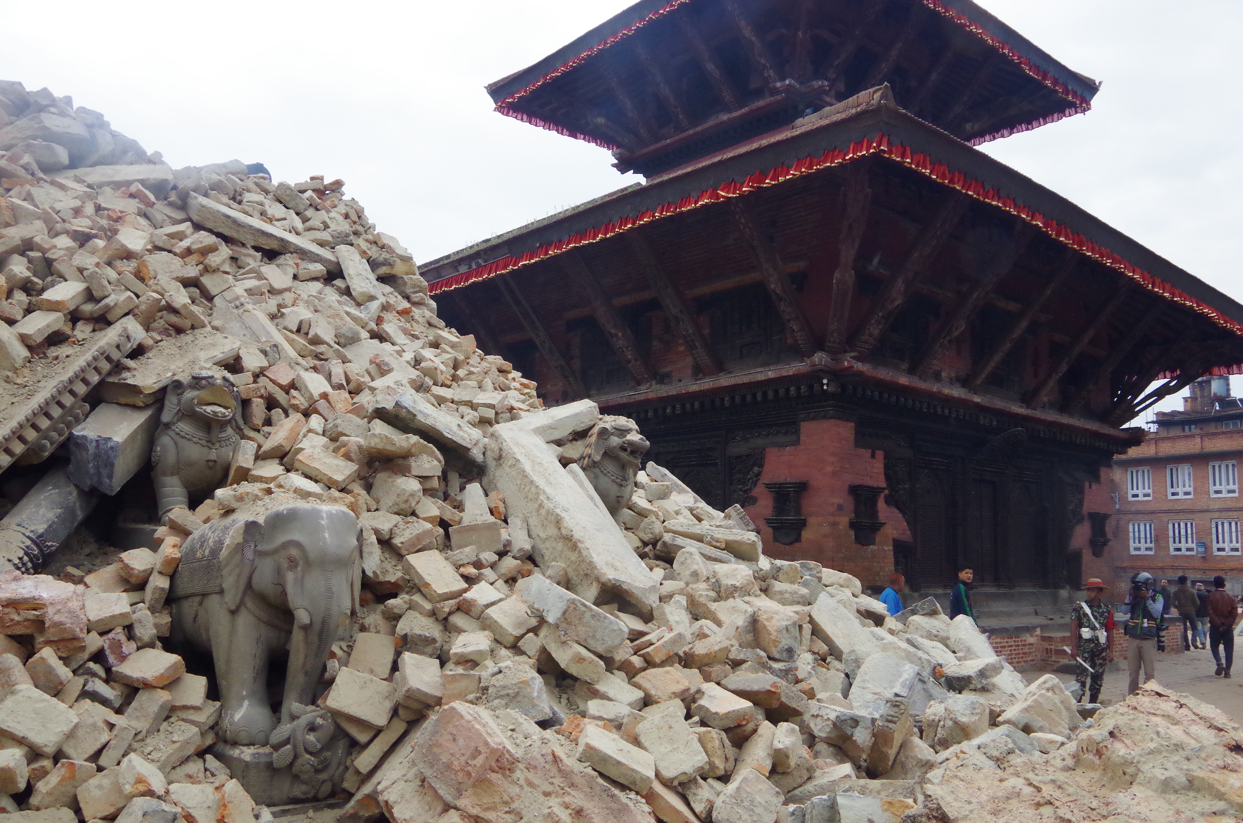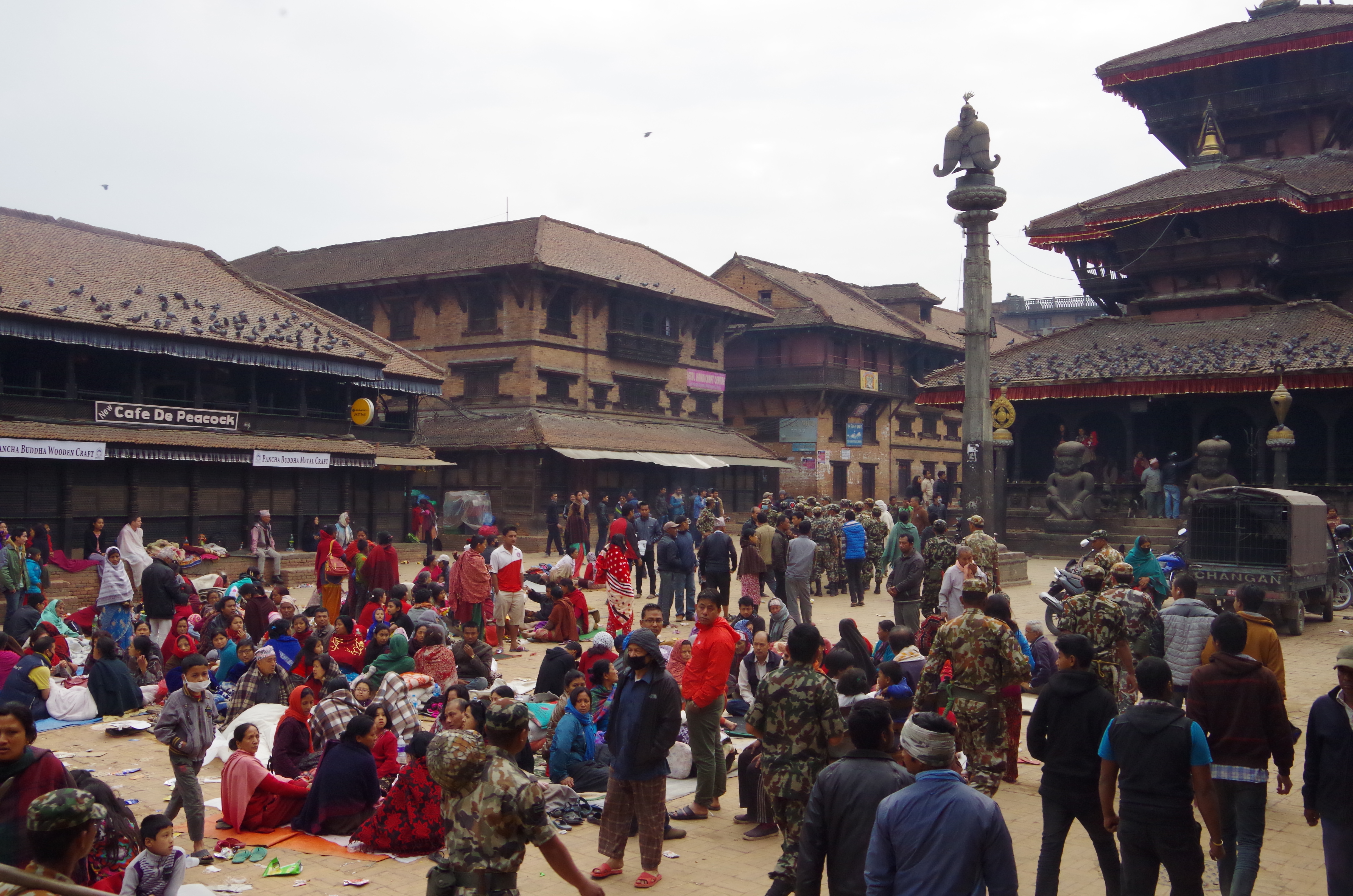 We arrived in Bhaktapur on Saturday, half an hour after the initial quake, to a scene of panic, bodies being laid in the streets and JCB’s munching through the rubble like aid relief dinosaurs. Blessedly a day later than planned due to me being taken ill on the road, I’ll never think of Delhi Belly disfavour-ably again! We weren’t sure what to do amongst the labyrinth of the towns famously archaic streets, which turned out to be her achilles heal. Buildings and temples dating back 700 years turned to dust and brick in seconds as the tremors consumed the city for the next 24 hours.