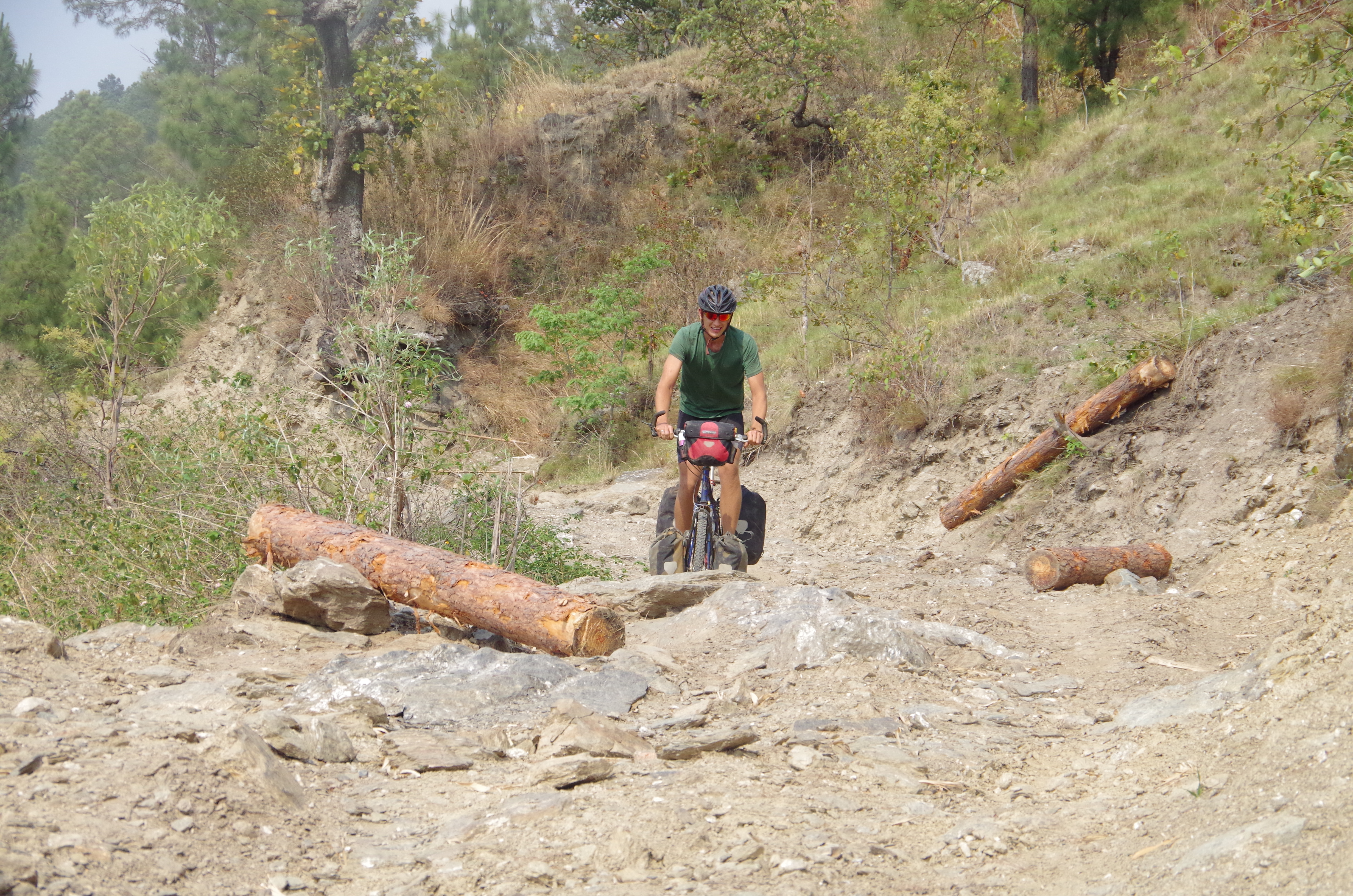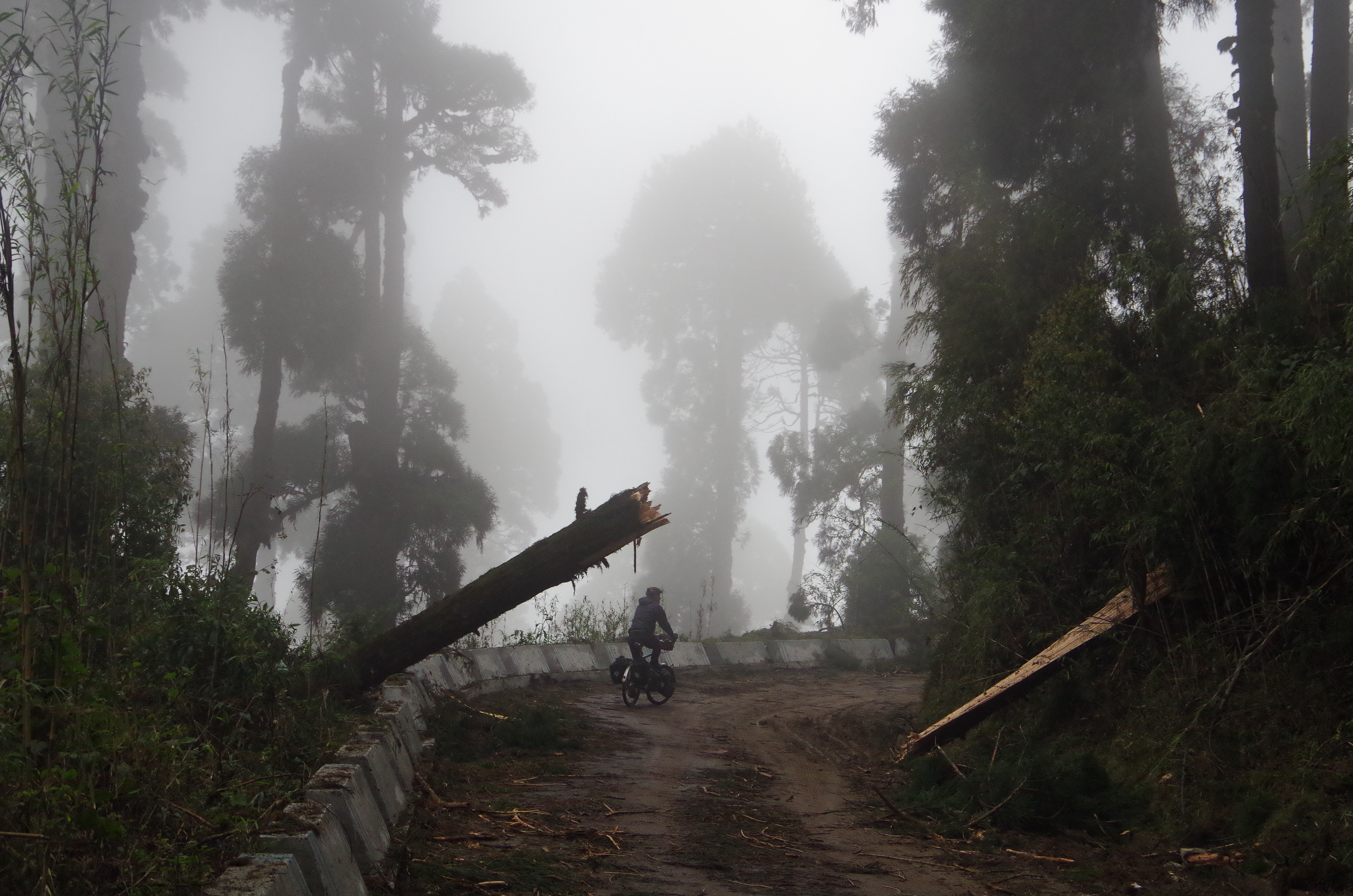 The effects of the storm were bombastic. Trees, like fallen soldiers, scattered the misty mountain passes on our road out the next morning.  An undulating day in the saddle before we descended for the Nepalese border on the plains South of the Himalayas. Post a successful border crossing and good kip we were back to the climbs before you could say tickle-my-giblets! And onto our first Nepalese mountain stop, Fillick.