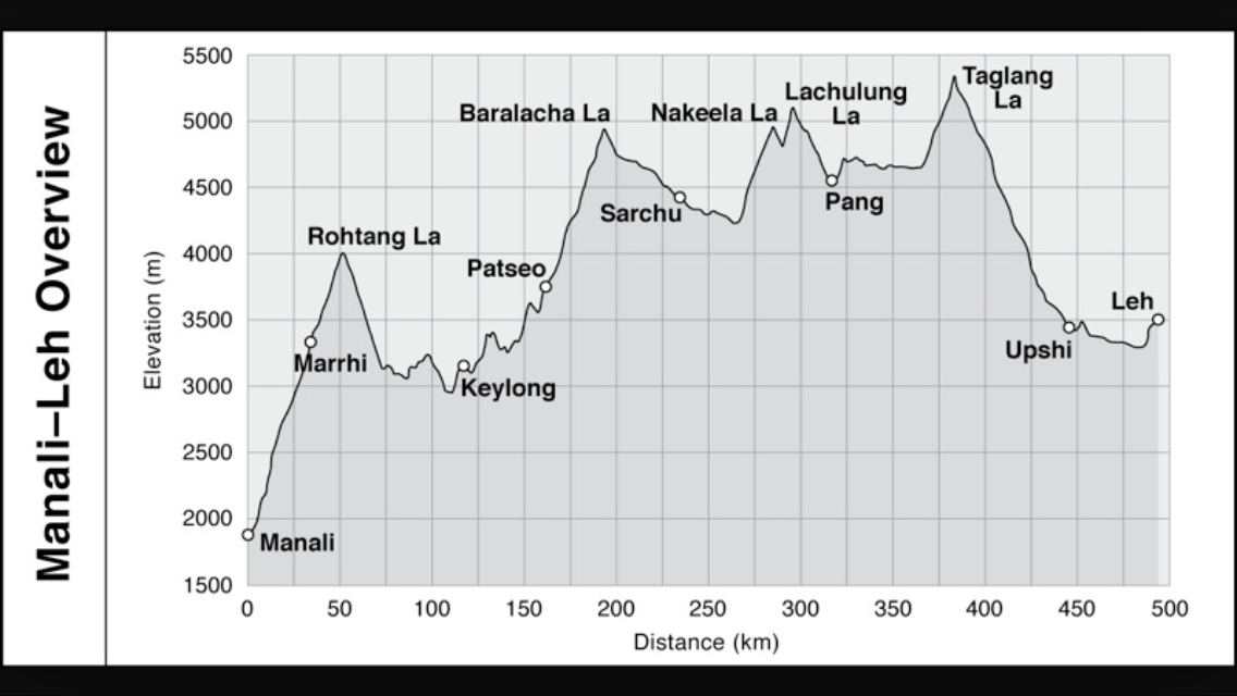 The Manali Leh highway en graph