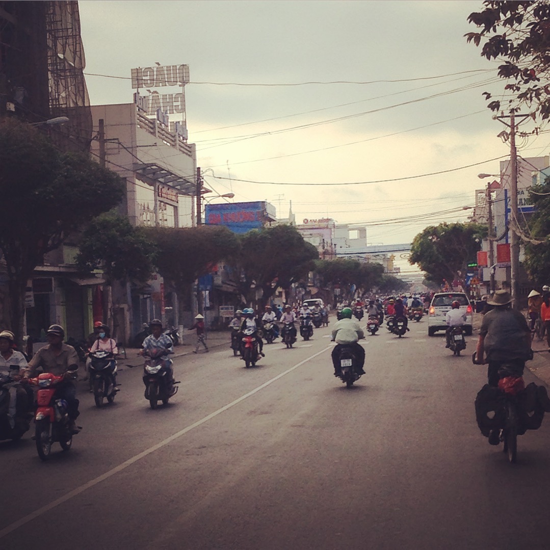 Our guide books have been hit and miss in this untrodden region.  With endless options in transacting the Nine Dragons we kept to the more favourable routes for pedal power.  4 days after leaving Cambodia we took a couple of days rest in Rach Gia.  Reading ahead we’d learned a little bit of Vietnamese goes a long way. It was a relaxed couple of days soaking up the vendors smiles to our Vietnamese courtesies as we sampled the sights and tastes of this bustling port town.