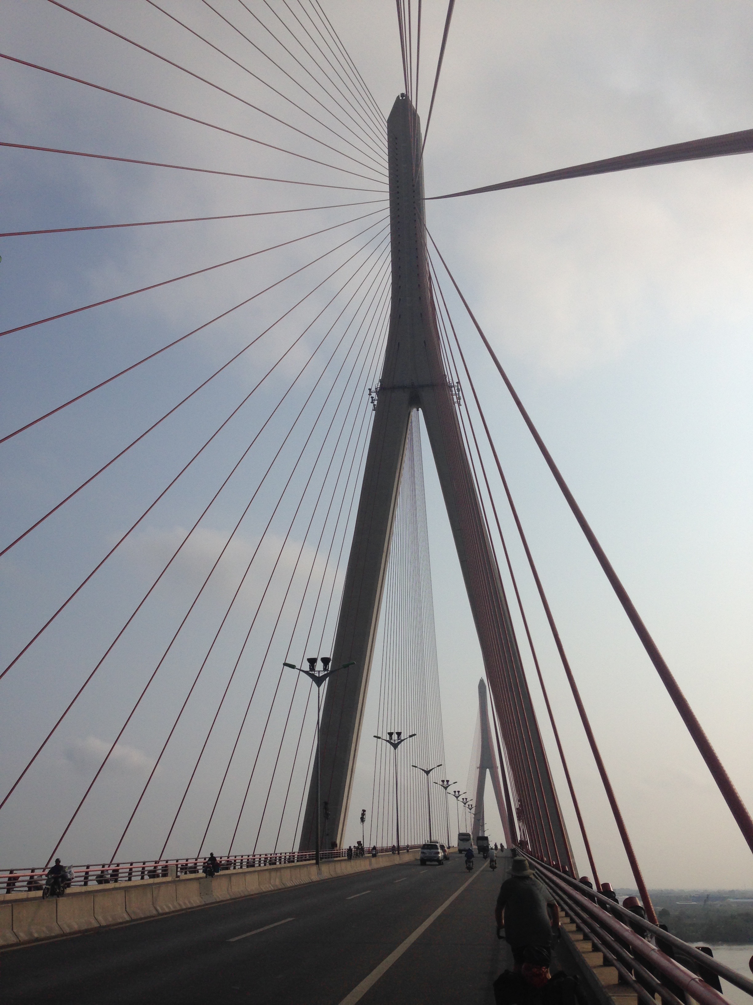 With the journey continuing we reached our highest point in the delta crossing the Can Tho double suspension bridge.  This Orwellian dystopian monster straddles one of the main tributaries with a heady clearance of 39m. I even got to experience it’s magnificence twice as we realised we’d left our laptop charger in Can Tho when we stopped for the day in Tra Vinh. Brian was down with a dodgy stomach so I was on the back of a scooter for a 3.5hr round trip to retrieve said part.  When your bum needs a day off, 3.5hrs on a scooter takes some grimacing!