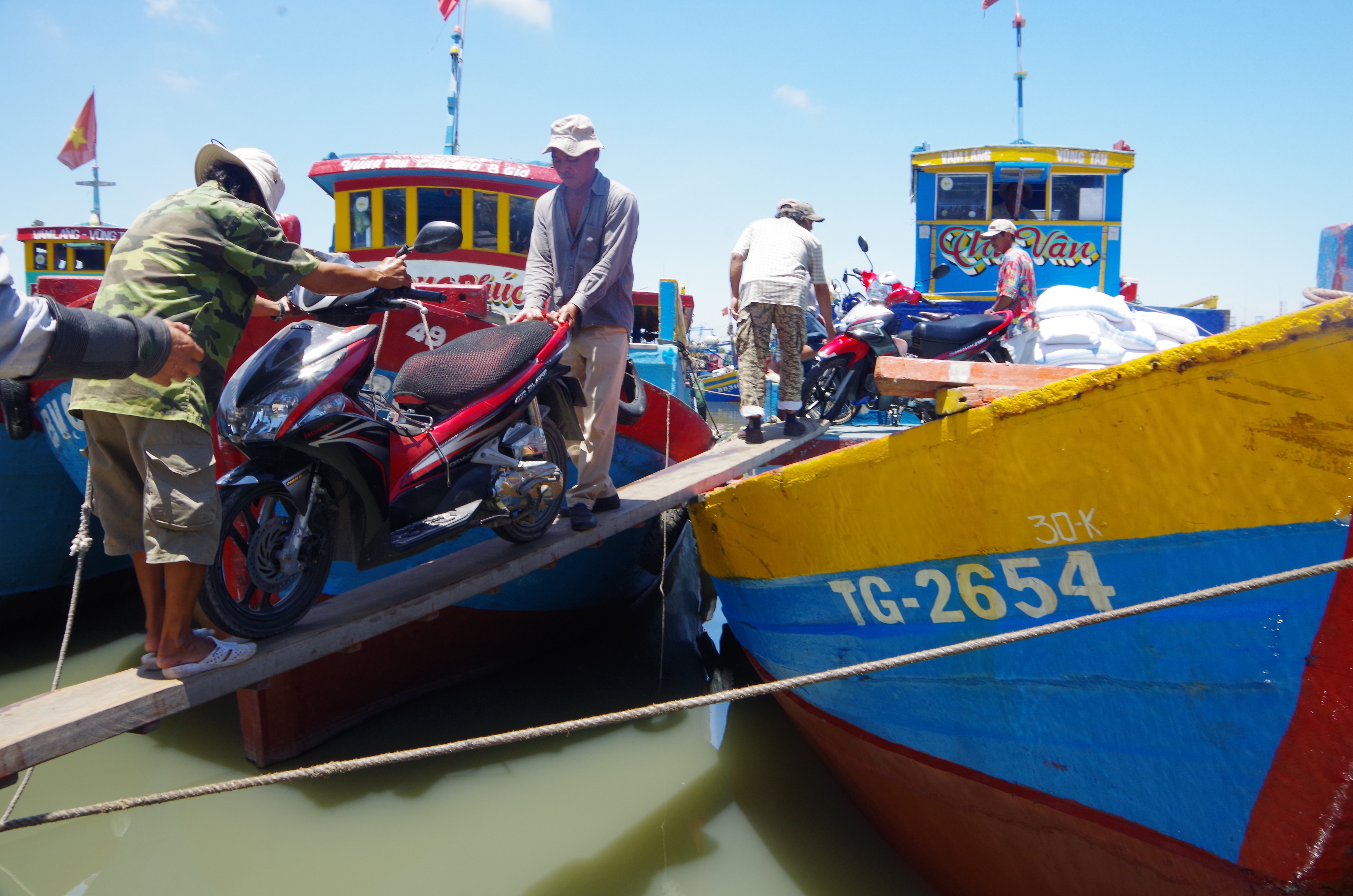The crossing of the Nine Dragons culminated in a ferry trip from Vam Lang to Vung Tau.  Sharing the boat with crates of ducks, pigeons, chickens and rabbits, piled around bags of grain, stacks of scooters and a caravan of locals was a unique few hours.  Though the crossing afforded us the luxury of bypassing Ho Chi Minh. Meeting directly with the southern coast and a chance to air our tarpaulin home for some beach side camping.