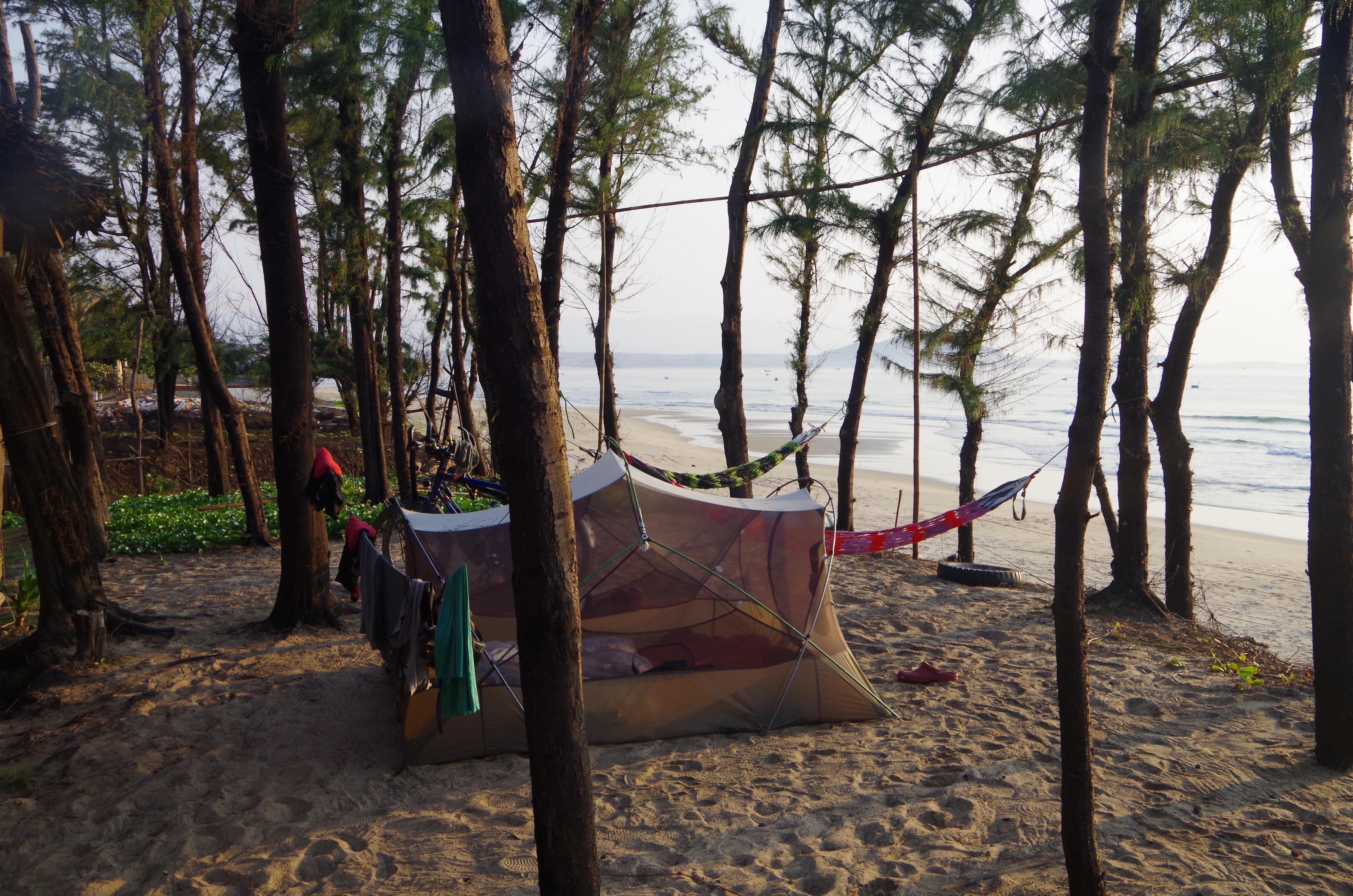 We’ve finally found a peaceful spot Northeast of Mui Nei in a backpackers resort.  Having invested in 2 spangly hammocks the tent has been pitched amongst strategically placed trees overlooking the empty white sand beach.  With the temperature keeping high we’ve left the all-weather cover off and drift to sleep with the full moon and jupiter shining down and wake with the sun breaking a new day.