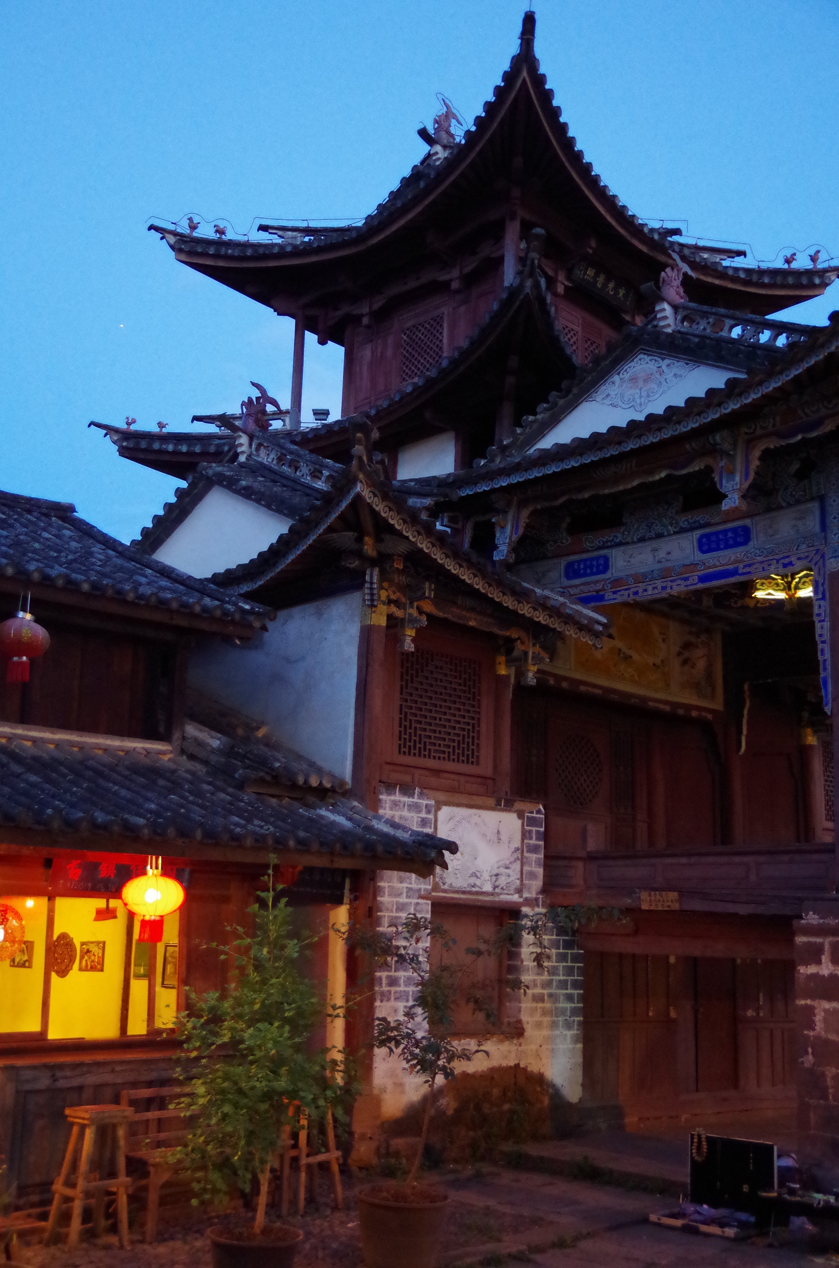 I’m not sure whether it was the murky hot pool or my pork soup dinner but the night was spent yelling down the porcelain thrown. As mentioned the limited time on visas meant no rest for porcelain shouters and we were off up a 1000m climb to the town of Shaxi. A dirt road ascent and flint cobbled offering on the way down had us shaken and stirred by our arrival.