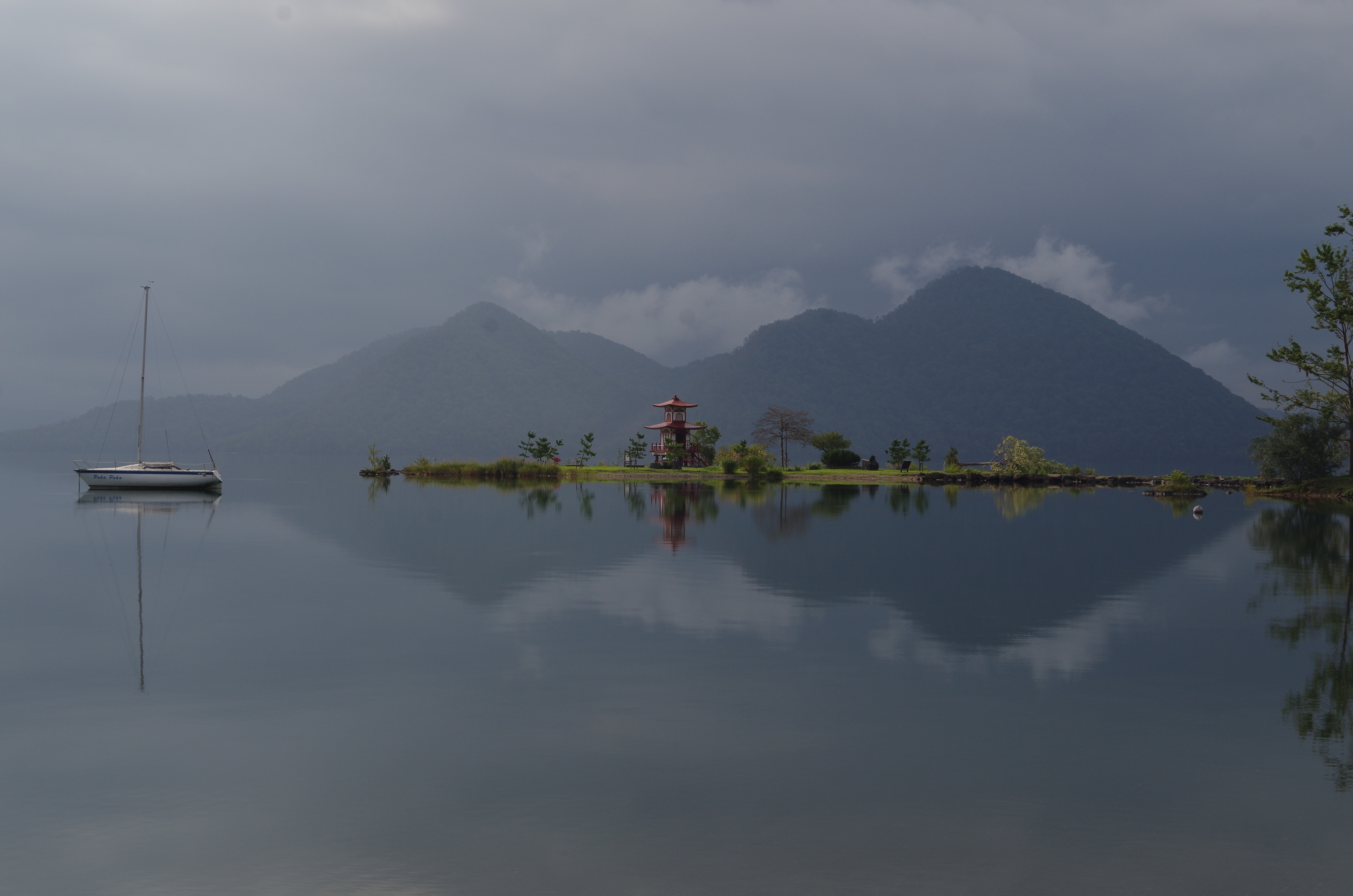 ‘Came out’ is perhaps an overstatement but there was definitely a few dry afternoons on Lake Toya.  The sole campers on the deserted shores, we swam before breakfast and dried our kit when clouds permitted.  It’s always tricky to put into words the sense of beauty behind the scenes we witness.  These caldera lakes have continued to be amongst the most ethereal.  Toya is graced by a crown of active Volcanoes with a glimmering jewel of a forested island at her centre. The misty mornings, fracturing sun and mirror like waters were a heavenly canvas to capture some memories.