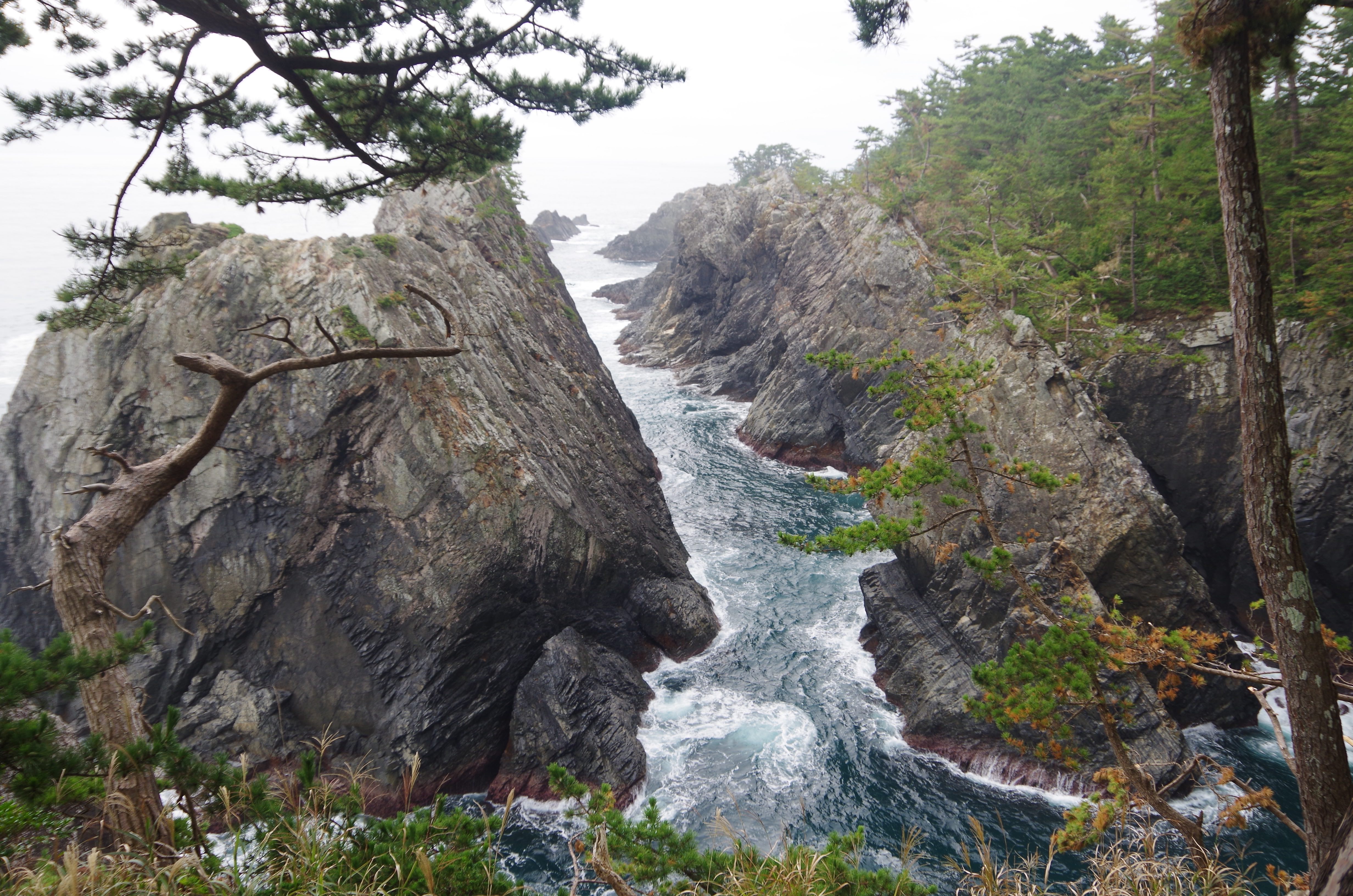 Meeting the Shimokita Peninsula of the mainland we bedded down in a free fishermans campsite in Oma town.  Starting early we’d climb to the centre of this headland, and with the rain back the onsens that awaited were a welcome motivation. Unfortunately the typhoons were still scuppering our way with the roads ahead closed.  It was back to the wet windy coast then to reach the town of Mutsu for a couple of days R&R.