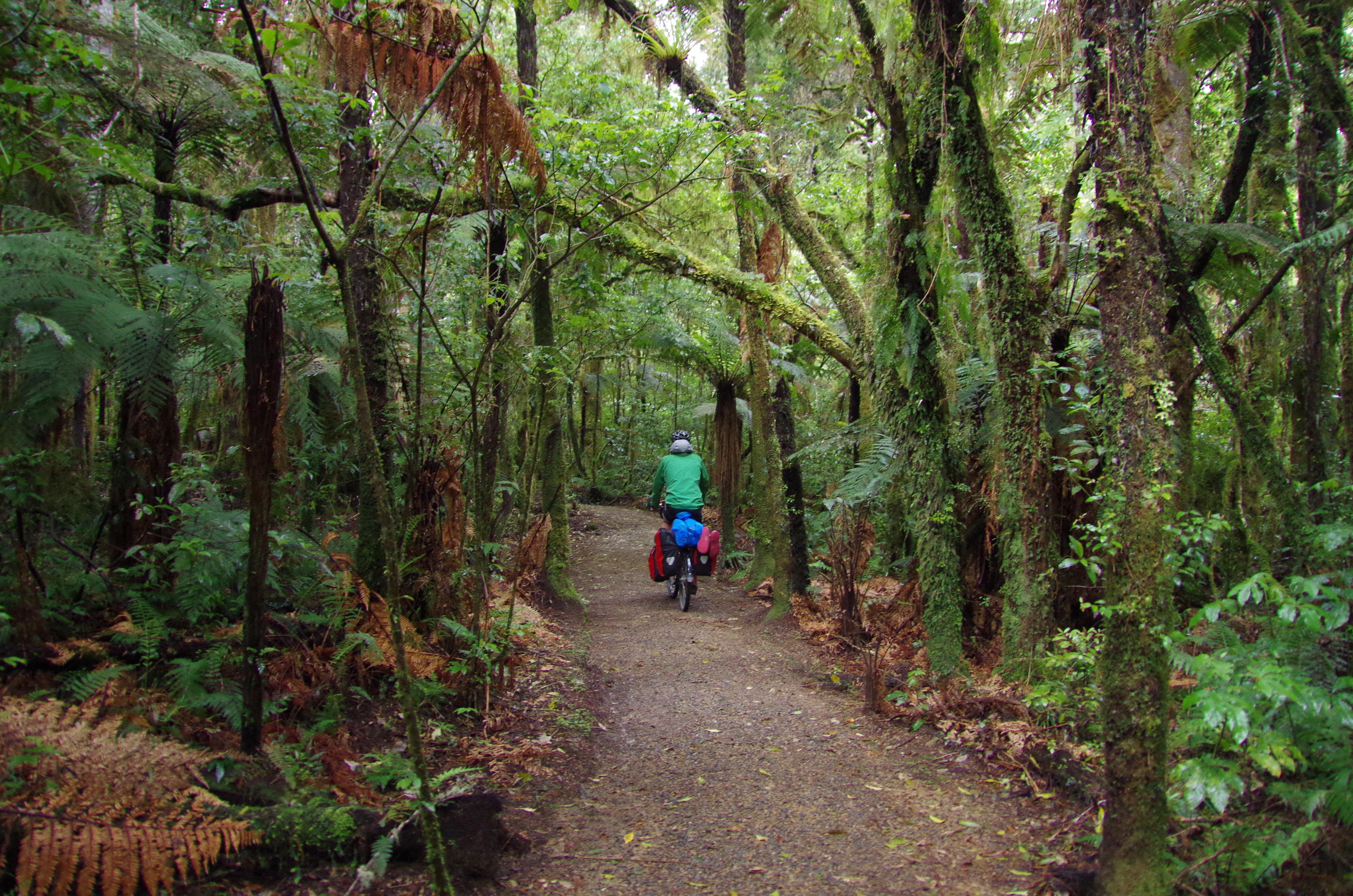 It was time for a day off before we took on the next chunk of peddling.  We’d be meeting the Timber Trail, an old logging track which runs the 85km length of the Eastern reserve.  Unfortunatley the night before we took to the saddles the rain came back.  Perfect for ducks, not so great for a 3 foot wide muddy forest trail on fully loaded touring bikes with no suspension.  The challenge began but the scenery as ever didn’t disappoint.  Moss caked forests taken straight from the pages of Tolkien and giant tree ferns, a plant which is as much of a national treausre as the kiwi.