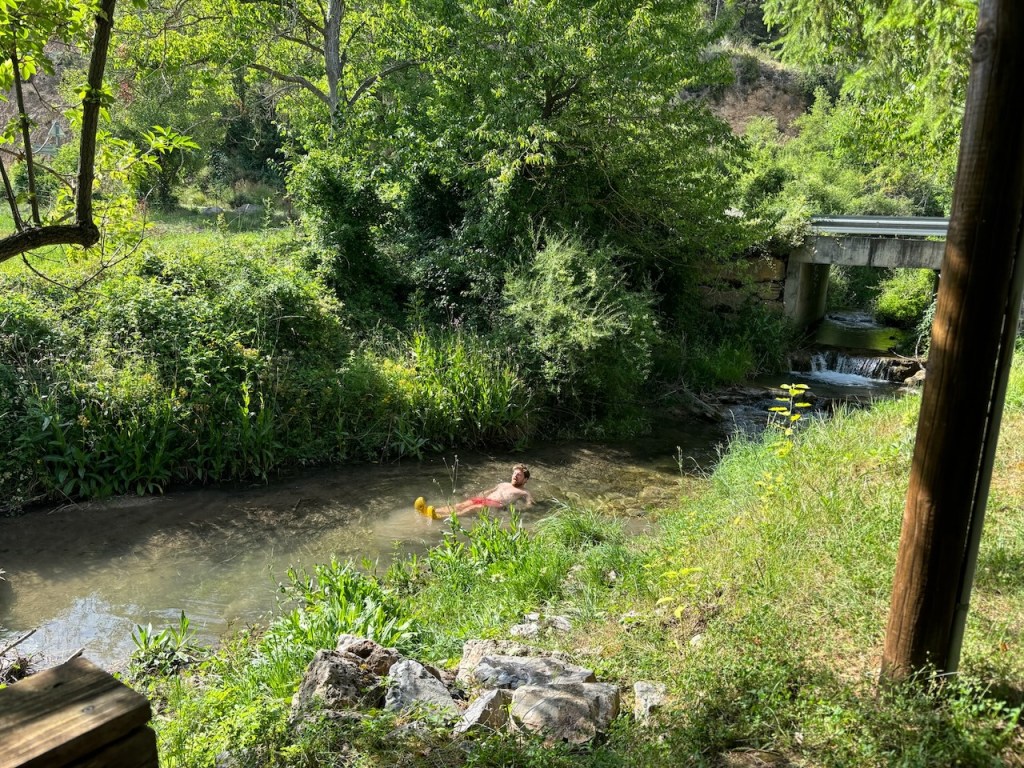From the castle break, we shared a spectacular Spanish world cup win at our first campsite before restocking the panniers in O’Lot and climbing to Campdevanol.  Situated by the ‘El 7 Gorgs (pools)’ on the Torrent (river) d’Estiula, our day off was spent exploring the wild swimming pools up the valley.  Picnics on the shaded banks, diving into clear waters and sitting in silence amidst the forests.  The Donkey and Horse tempo tapping in again, infused by new memories with friends.
