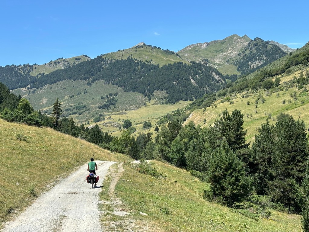 The deeper in the Pyrenees the higher the climbs. 1000 metres the next day from Marias to a cross-country ski-chalet on the peak of Estaciō de Sant Joan de l’Ern.  In contrast to the hospitality and kindness in Castelbo, we were moved on when we tried to share a picnic table with a family, being told that ‘in Catalonia we tell the tourists to go home’.  These interactions can happen anywhere, a reminder for two left-leaning-lads that a right-wing proprietary view even covers a picnic table in the mountains. Of course, neither view is right or wrong and we know nothing of the families situation who took umbrage to our hostile-picnic-table-takover. 2024 is a bumper year for national elections around the globe, and as some surprise results lean to the left this isolationist and separatist mindset wins out in many places too.  For us, travel is a reminder we’re all pretty similar. Humans living as honestly and simply as we can. And there’s joy, education and expanded minds in experiencing and sharing cultures, heritage and national assets.  Seeking and creating harmony in a world that we all must share, seems like a positive philosophy.