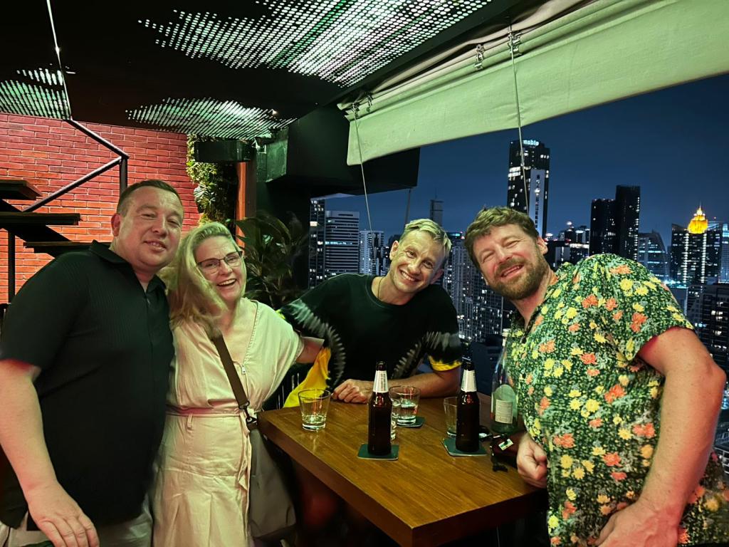 Ellen and Ray, who’s fabulous wedding we joined in August, were on their honeymoon in Thailand, so we grabbed dinner overlooking the Bangkok skyline. A few hours catching up outside our usual reunion ground of Brians hometown, Waterford. Surreal but fabulous. Getting to share and fall in love with each others close friends and family, a fitting final moment in this chapter.